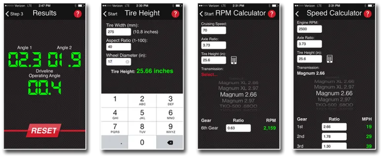 Take the guesswork out of your chassis setup with this handy 3-step tool! By using your smartphone as a measuring device, the app will calculate each u-joint angle and provide an overall driveline operating angle with a Pass/Fail response.